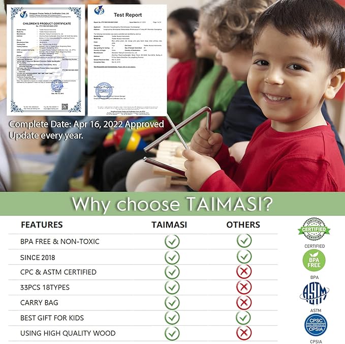 [Nontoxic and High Quality Materials] - Made of high quality non-toxic material, safe and reliable for little children. These instruments are made with lead free paint. Cpc Certified / Astm Certified.