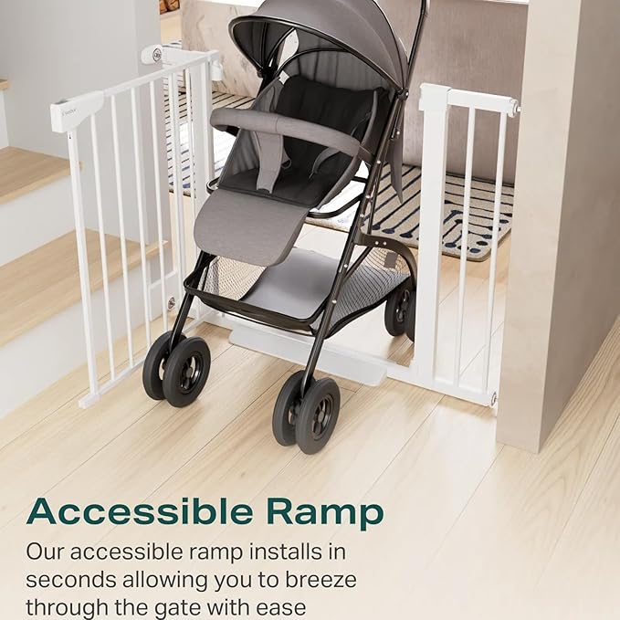 - Keep Your Little Ones Safe and Secure: The metal baby gate is designed to block curious babies and toddlers from accessing staircases and other off-limit areas, featuring a unique and patented double-lock safety release