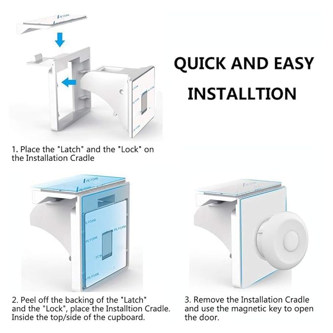 - 【Easy Install in Seconds】 No Drill or Screws Needed. Norjews baby proofing locks have a specially designed installation cradle and high quality instructions video. They are super quick and simple to fit in just seconds