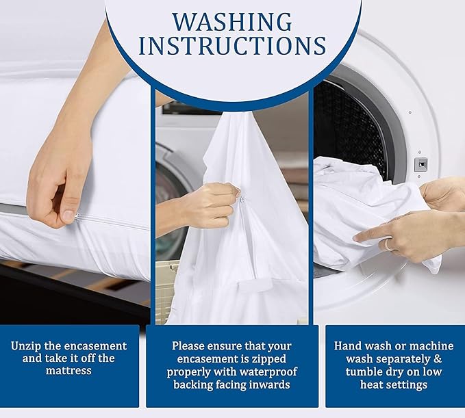 100% Waterproof Protection - Mattress encasement protects your mattress from unwelcome spills and keeps your mattress clean and safe. High quality TPU backing on all sides resist any leakage into the mattress.