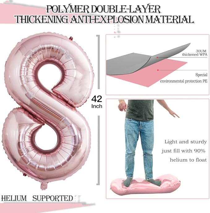 • 2 pcs Number 8 Balloons in Package,Double Guarantee for the 8th Birthday Party or 88th Birthday Party