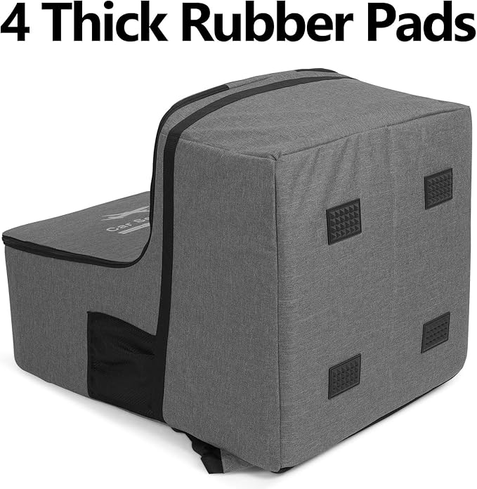 Keep Car Seat Secure: Thick padding sandwiched between layers of sturdy material, which keeps car seat in good condition. An adjustable strap with buckle in this car seat bag help reduce the risk of bumping and damping. 4 thick rubber pads on the bottom to prevent scraping.