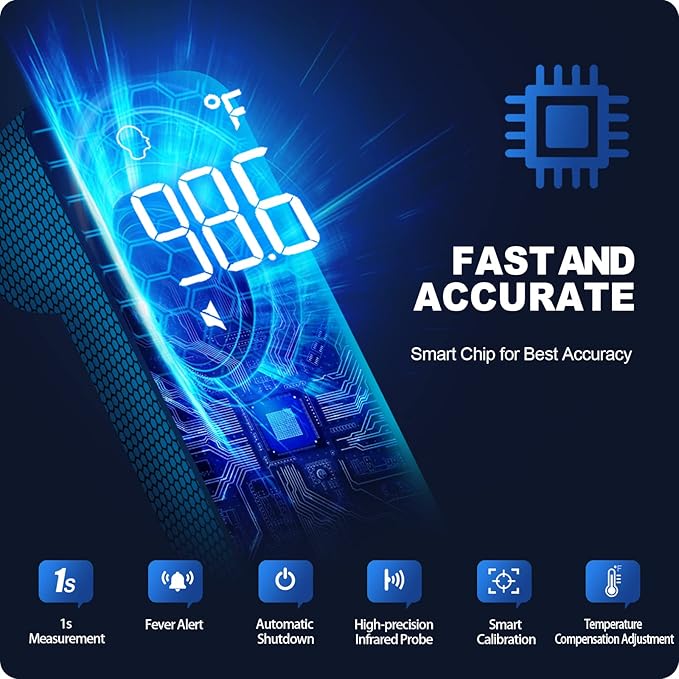 - For accurate readings: 1) Hold 1.5" from forehead center 2) Clean skin & wait 10 mins 3) Allow 10s between measurements. Works best in stable room temps (50°F-104°F).