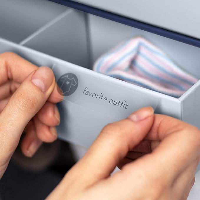 - Hand-illustrated labels let you customize your memory box: 52 hand-illustrated baby labels show you what to save and where to find it. It’s easy organization that’s beautiful.