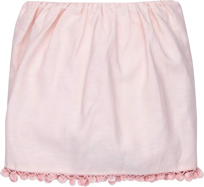 • Stunning shirred 16-inch-long crib skirt with pom-pom trim create a designer look