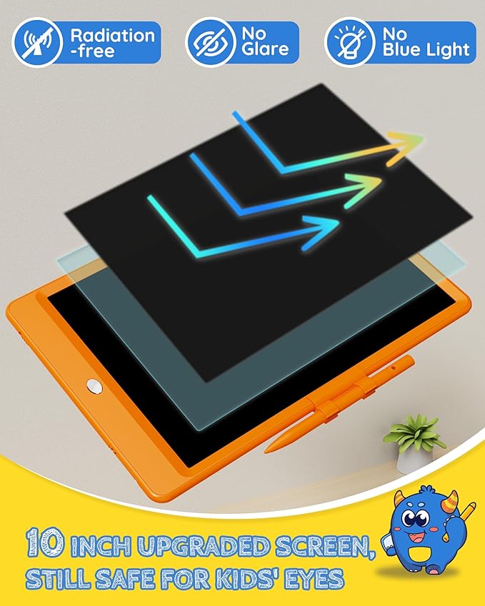 - Free Child’s Imagination: Tekfun LCD writing tablet provides 10 inches of space for kid’s writing and drawing, free children's imagination. The eye-protection colorful screen of doodle board provides a better painting experience, avoiding injury to a child’s eyes from long-term use