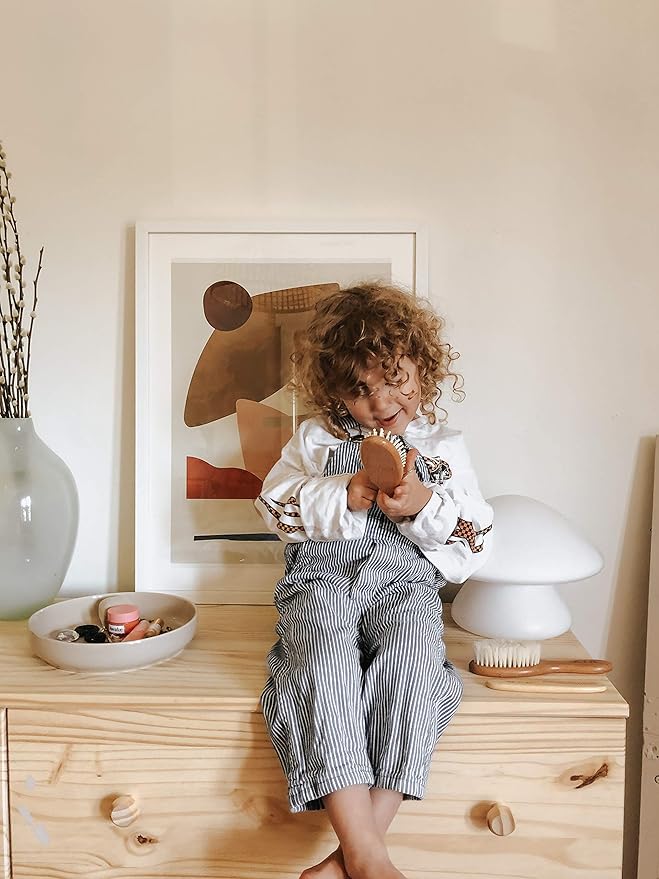 - WOODEN BRUSH AND COMB SET! This baby hair brush set for newborns includes four baby grooming accessories, a soft wooden goat hair brush for baby, a sturdy wooden detangler brush for longer hair, a wooden bristle comb for the toddler age, and a silicone scrubber brush for removing cradle cap. Our product grows with your little one from age 0 to 5!