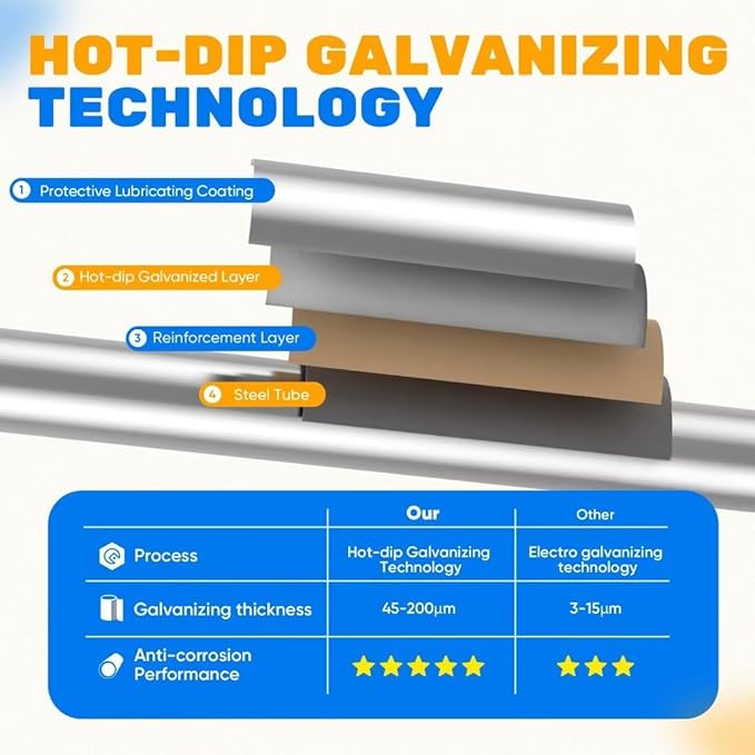 - 【Longer Durability Frame】Constructed with hot-dip galvanized steel, the ORCC trampoline features a robust frame that boasts a dual-layer protective coating of iron-zinc alloy and zinc. This advanced technology ensures exceptional durability, granting the trampoline over a decade of rust resistance—even in coastal environments prone to harsh weather.