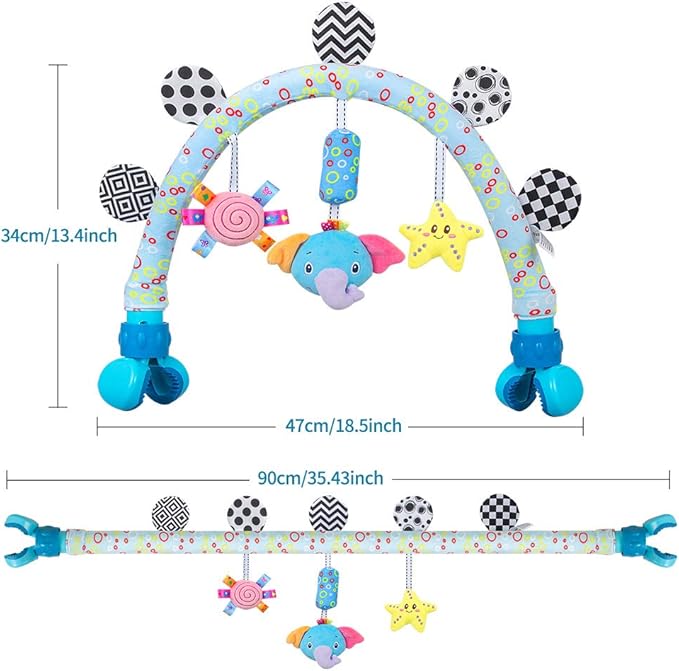 Securely attach to variety of strollers,car seats,prams,bassinets and bouncers.This enables Easier Outdoors and Easier Parenting,helps to keep our little one entertained and engaged