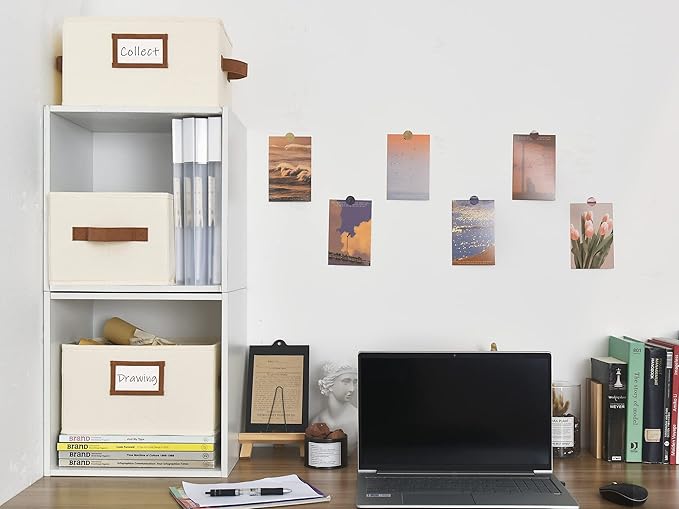 • Storage baskets with two sewn-in PU handles for easy carrying around, and the label holder for easy marking and identifying the items inside.