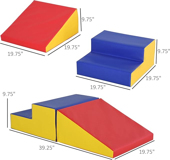 Foam Stacking Blocks Info: Includes a ladder (19.75" L x 19.75" W x 9.75" H) and a ramp (19.75" L x 19.75" W x 9.75" H). Recommended/Standard age: 12-36 months. Standard: CPSIA, ASTM F963.