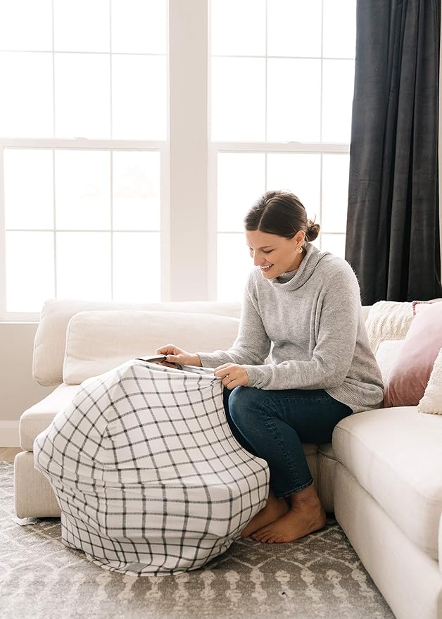 5-in-1 Cover. Baby Car Seat Cover. Nursing Cover. Shopping Cart Cover. High Chair Cover. Infinity Scarf. Stretchy fabric fits most car seats, shopping carts, and nursing mothers Navy Blue Stripe