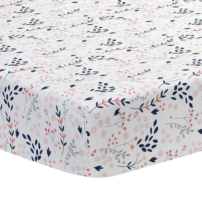 100% breathable cotton crib sheet with elastic all around providing a safe and secure fit.