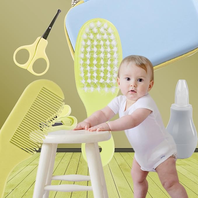 8 sets Of Newborn Essentials (1 set). Combs, combs, tweezers, nail clippers, nasal aspirator, finger toothbrushes, round-head scissors can meet the daily needs of babies. The best baby necessities/supplies for newborns.