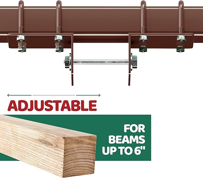 Includes: Two (2) 18" adjustable bracket, compatible with all swing set brands. All hardware needed to mount to a wooden beam