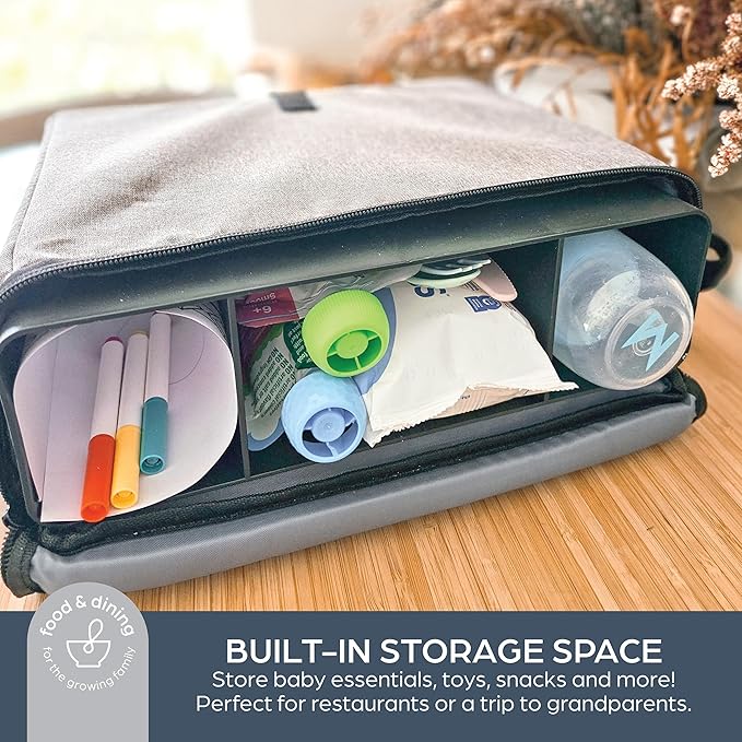 - 𝐂𝐨𝐧𝐯𝐞𝐧𝐢𝐞𝐧𝐜𝐞 𝐅𝐨𝐫 𝐏𝐚𝐫𝐞𝐧𝐭𝐬: This isn't just a booster seat for the dining table. Featuring a carry strap, it quickly and easily can be thrown over your shoulder for on the go adventures & the built-in storage gives you plenty of space to store the necessesities. Dine with confidence knowing you have a dependable high chair solution no matter where you are.