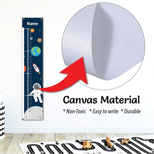 Growth Chart Size - 55 in (H) X 11 in (W), This growth chart is made with poly canvas (Matte), and this chart has 4 grommets, each corner. It is easy to hang on a wall.