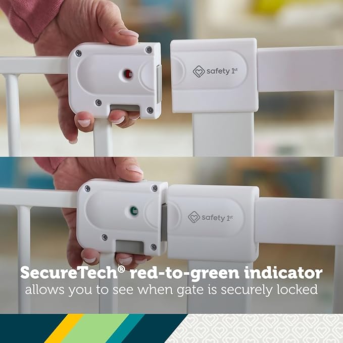 - PEACE OF MIND WITH SECURETECH: Our baby gate features SecureTech, Safety 1st’s red-to-green indicator on the top rail allows you to see when your gate is securely locked.