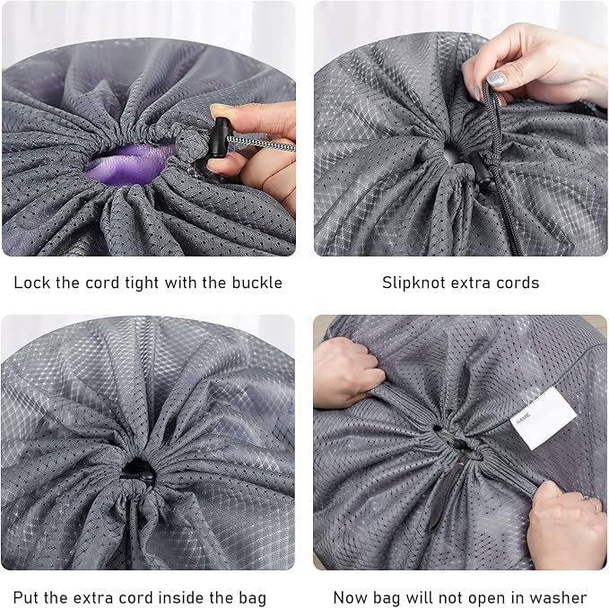 - 【Drawstring Locking Closure】The mesh bag has an locking drawstring closure to prevent spill. If you use them as wash bags, please tuck toggle inside the bag to avoid the drawstring loosen in washing machine.