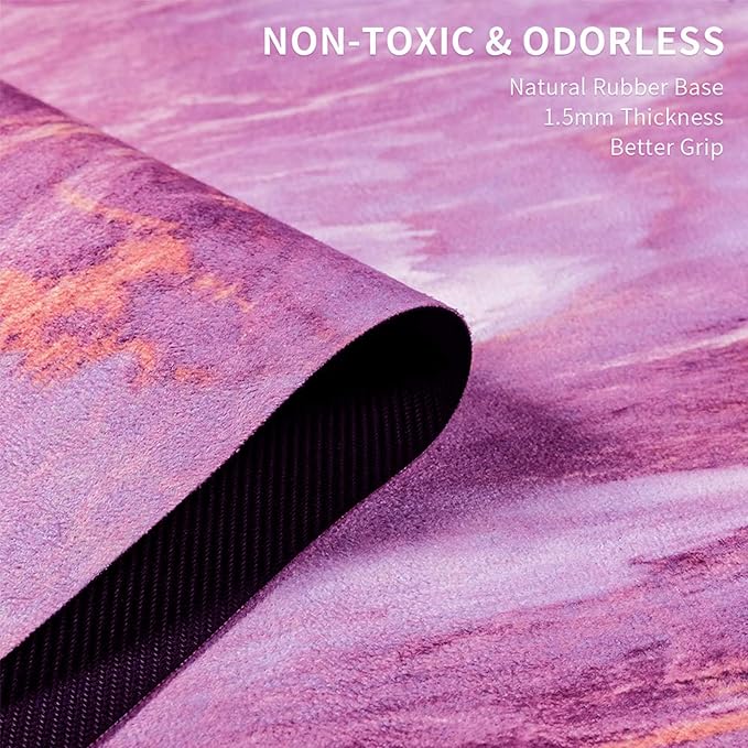 - 【NO FEAR OF SWEATING】Microfiber vegan SUEDE surface will keep dry when you sweating. Suitable for hot yoga and other high intensity exercise. If your mat is slippery in the beginning before you break a sweat, just spray a little water on your mat to begin.