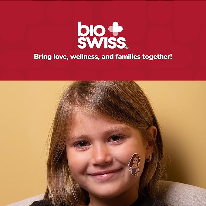 BioSwiss Bandages, Mermaid Shaped Self Adhesive Bandage, Latex Free Sterile Wound Care, Fun First Aid Kit Supplies for Kids, 24 Count