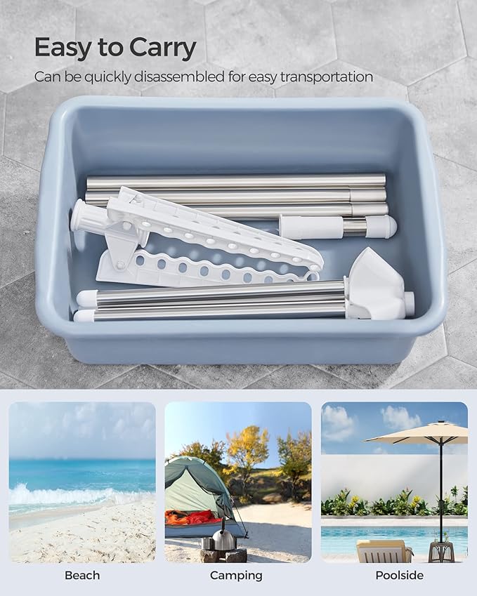 - [Easy to Set Up and Carry Around] The rack comes in 7 parts, making it easy to set it up or take it down in a minute, so you can bring it with you for drying clothes when camping