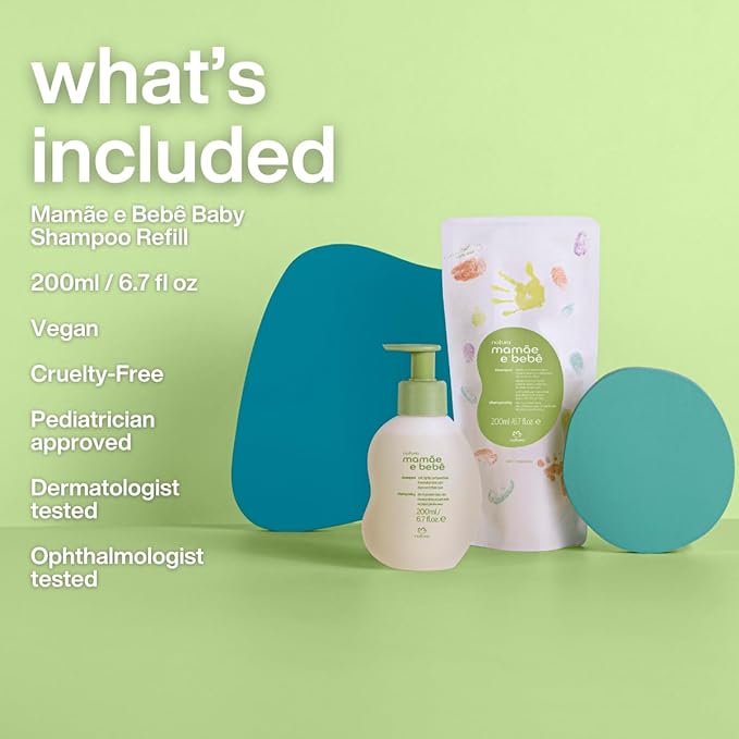 natura - Mamãe e Bebê Shampoo Refill - 100% Vegan - Safe & Gentle Formula - 98.4% Natural Origin - All Skin Types - Cruelty Free - Brazilian Baby Beauty - Baby Essentials - 6.7 fl oz (200ml)