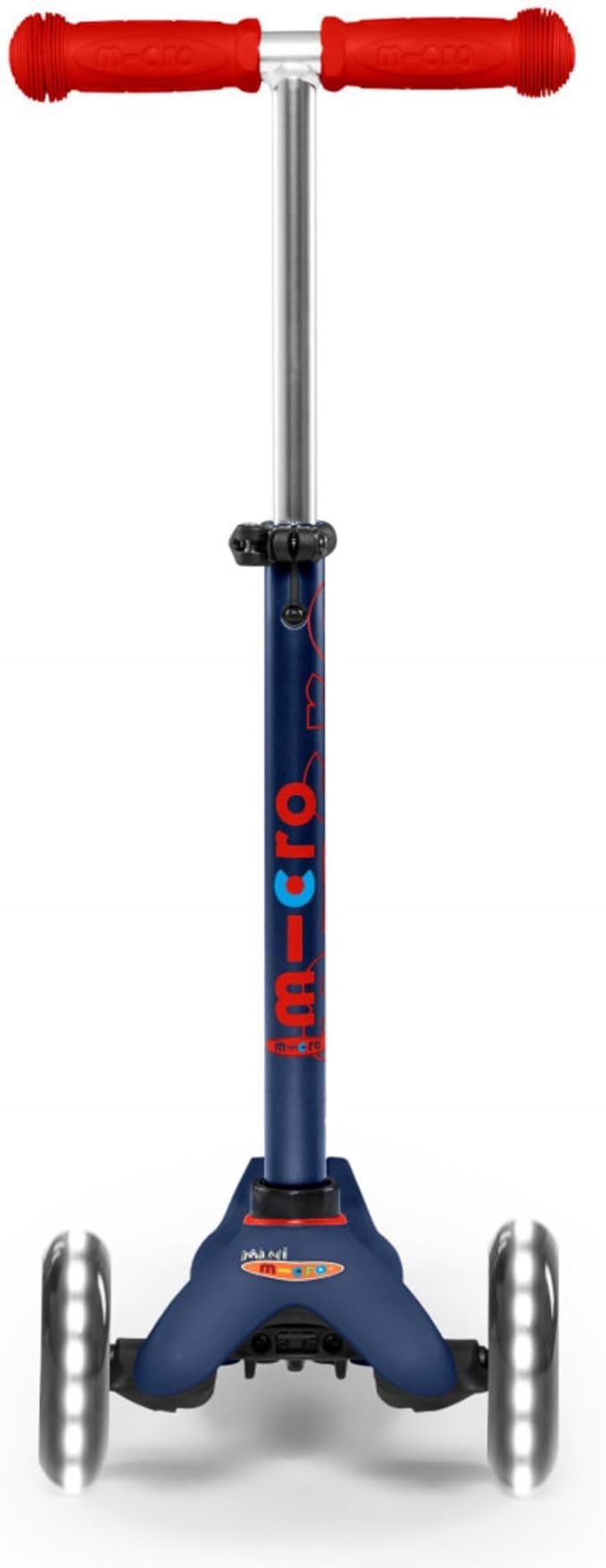 - Micro's 3-wheeled Mini Deluxe LED scooter, with a lean-to-steer design, offers a stable ride that supports toddlers and small children as they master balance and coordination. Features two front LED motion-activated light-up wheels. (No batteries required!)