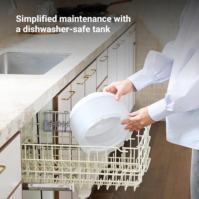 - NIGHT-LONG HUMIDIFICATION: The intelligent AutoHydrate feature automatically adjusts to your environment, ensuring perfect sleep air throughout the night. With night mode, enjoy whisper-quiet humidification for an undisturbed, restful sleep.