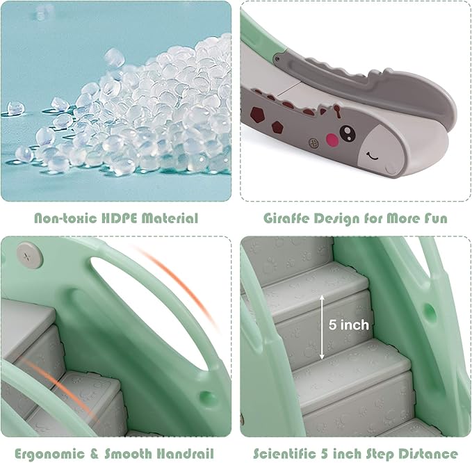 - 【Premium Material & Stable Construction】 Made of odorless HPDE material, this toddler slide set with ASTM and CPSIA certification is safe and durable to use. Meanwhile, the smooth surface protects your kids' tender skin. Besides, the wide base & triangle stable structure make sure the strong load-bearing capacity allow the kids to play without worry.