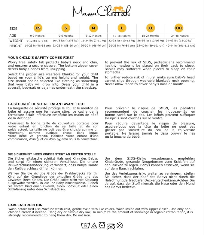 • 【ULTRA SOFT & COZY BABY WEARABLE BLANKET】— Mama Cheetah wearable blanket wraps your little one in total comfort and love. Made from premium 100% organic cotton, this organic baby blanket offers the ideal balance of super softness feel, & unmatched breathability. These baby essentials create a soft touch on your child's tender skin. With a TOG rating of 0.5, our sleepsacks keep your infant comfortably warm without overheating, enjoying calm nights & restful sleep.