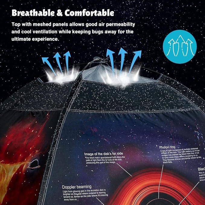 - GREAT GIFT FOR KIDS: Made with a delightful pattern explaining the black hole, our dome play tent will make a great gifting idea to boys, girls, and preschool teachers, and elementary schools who want to inspire kids to a fun, creative and physical fun play.