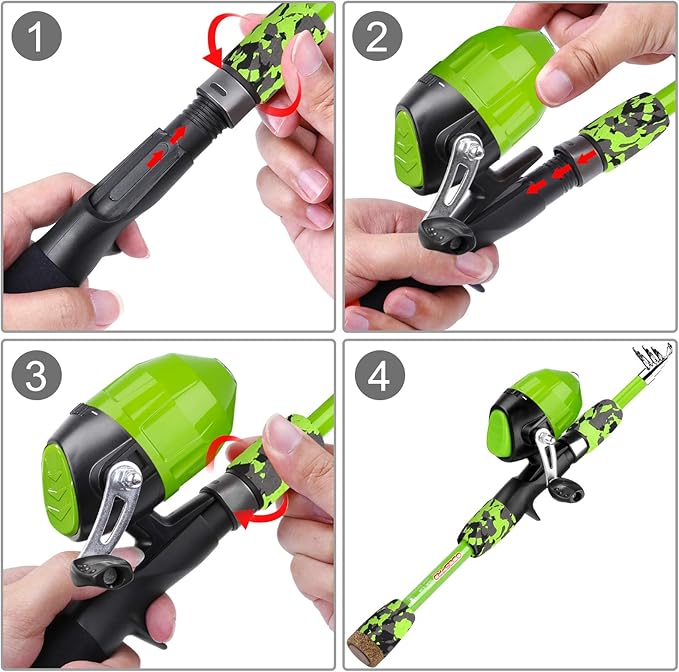 - 【 Starter Fishing Kit For Kids 】Comes with a Soft Casting Plug, with perfect size and weight, kids can cast in the backyard or on the shore to sharpen up their casting skills. An instruction manual is included, so kids beginners can quickly learn how to fish.