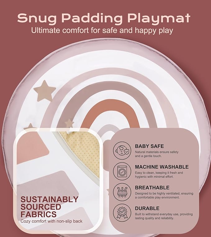 - SOFT & PADDED: Measuring 35.43x35.43 inches, our tummy time mat is crafted from ethically and sustainably sourced fabrics, providing a plush and smooth touch that is gentle on your baby's sensitive skin. Made with premium, non-toxic materials, it creates a cozy and secure space for tummy time, fostering joyful moments of exploration