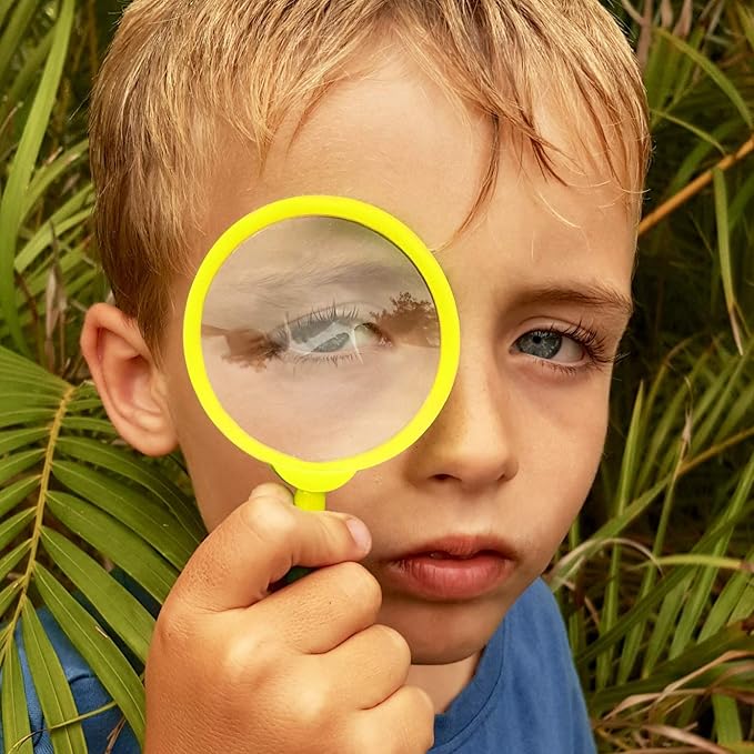 - 🔍LARGE MAGNIFYING GLASS - 3 x magnification for examining plants, insects and rocks. Wonderfully fun for camping trips and outdoor or indoor investigations. SAFE Non Choking pealess FOX WHISTLE - great for hiking, scouting, sports, games and safety locator. Clip on thick lanyard to be worn around the neck for quick access for signaling location or emergency use.