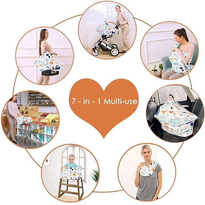 - Multi-use covers for babies and mothers – Unisex print pattern, breastfeeding covers, carseat canopy, baby car seat cover, stroller sun protection covers, shopping cart cover, feeding chair cover, carrier sunshade, car seat covers for babies, Nursing carseat canopy.
