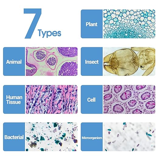 • Microscope slides with specimens for kids Great for home educational / hobby use, teach your kids the wonders of biological science
