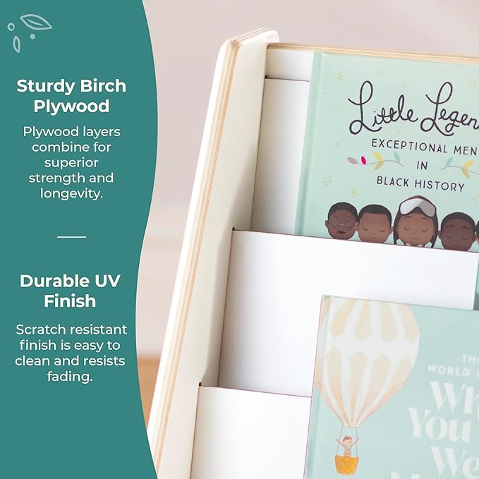 Guidecraft EdQ Book and Bin Display White with 3 Storage Bins: Wooden Kids Bookcase and Toy Storage Organizer; Homeschool and Classroom Bookshelf Furniture