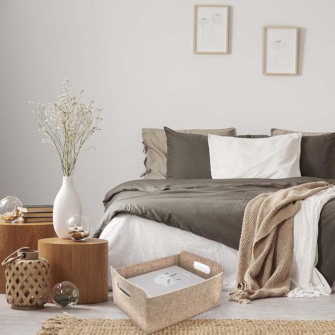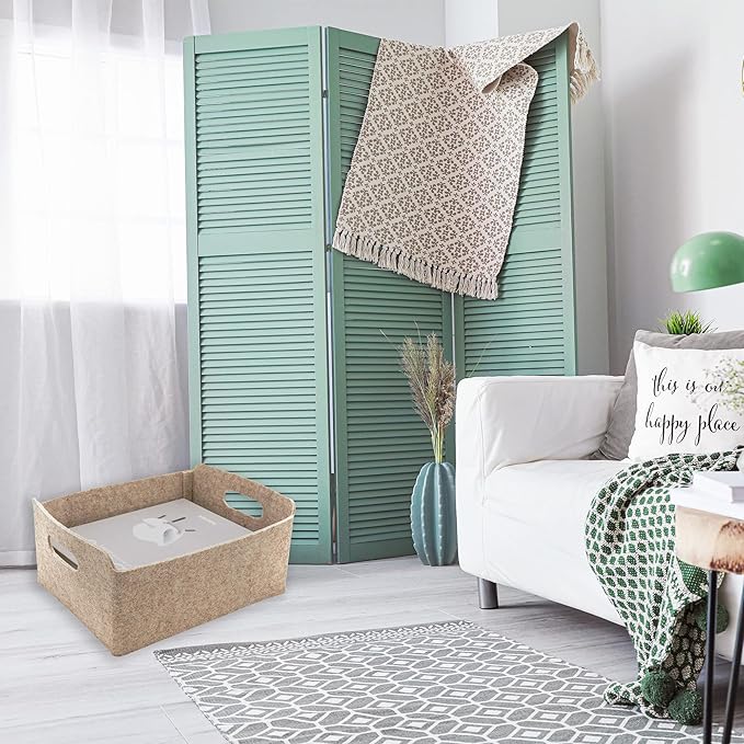 - 【Sustainable material】 Recycled felt with comfortable touch feeling, soft to prevent scratching,flexible for space saved up on desk, office ,bedroom, closet ,kitchen,bathroom or anywhere you desire with these stylish storage and organizer bins.