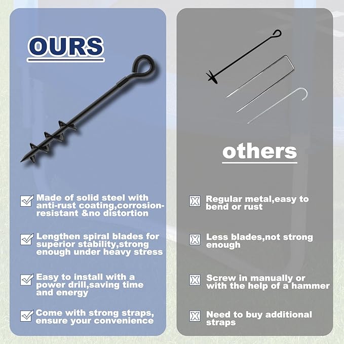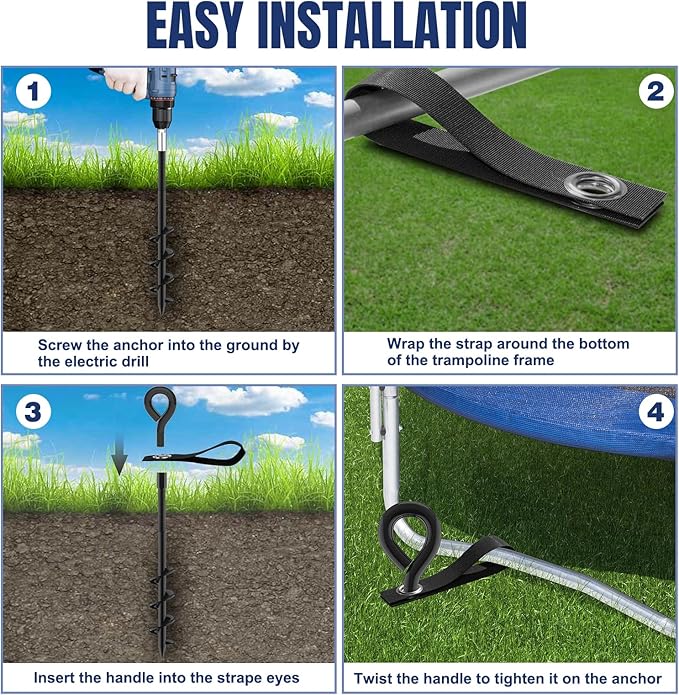 • Multiple Uses:Ideal for securing swings, slides, sheds, shelters, tents, fence posts, trampolines, bouncy castles,play tower with slide ,gazebos and trees. A must-have for stabilizing outdoor equipments.