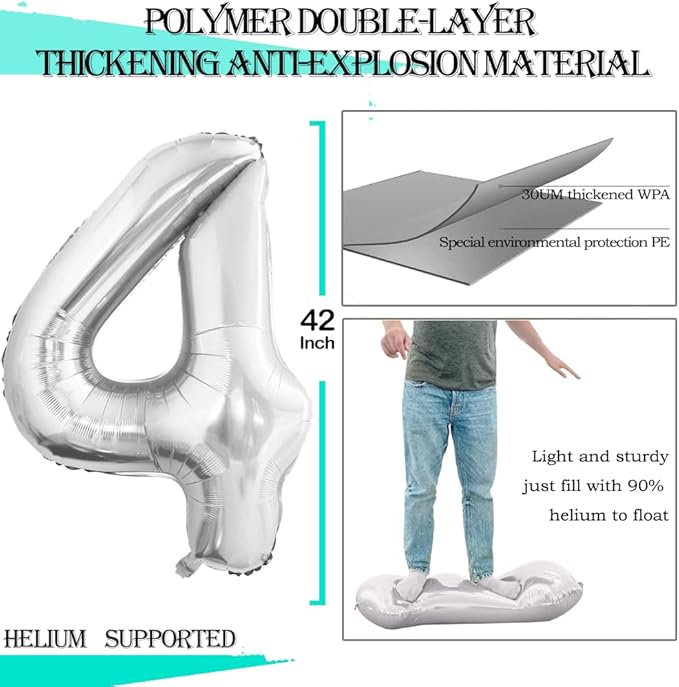 • Package Includes:42 inch Silver number 40 foil balloons,1 inflatable straw,10 meters ribbon