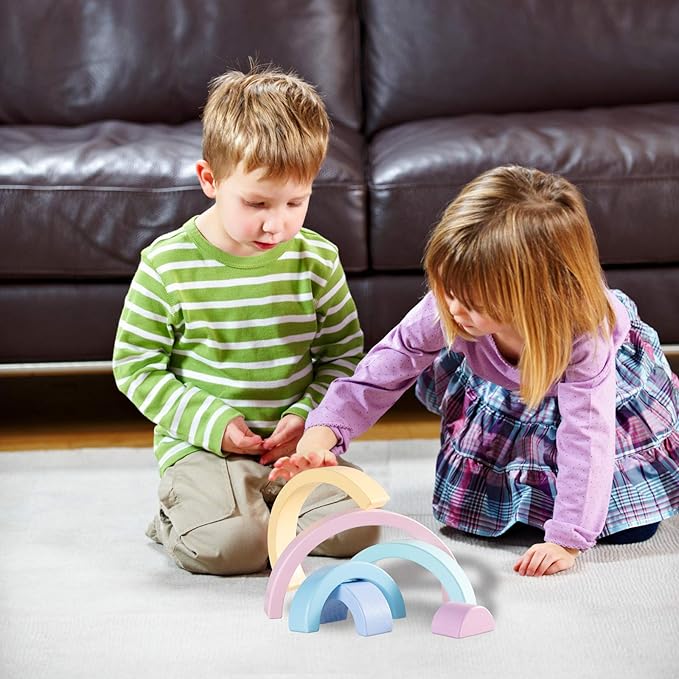 Inspires Creativity: The rainbow stacking block is a multifunctional and open toy. Help children exercise fine motor skills, color recognition, hand-eye coordination and early learning. Let your kids imagination lead