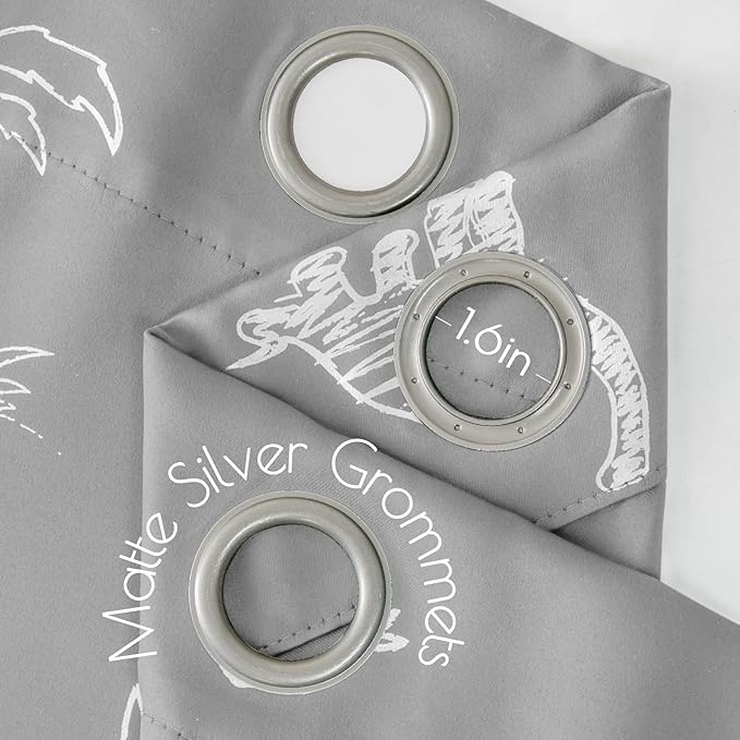 Vangao Kids Curtains Grey Blackout Dinosaur Curtains for Boys Kids Nursery Girls Room Silver Dino Foil Print Thermal Insulated Drapes Grommet Top Window Treatments 84 Inches Length 2 Panels