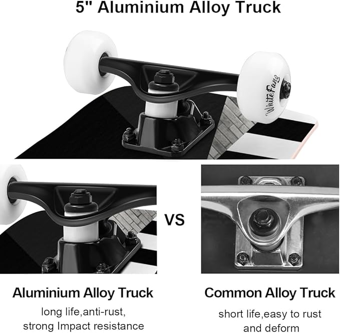- 🛹 Take You a Better Experience: High speed 95A PU wheels work with ABEC9 bearings and 95A High rebound PU bushing. Give you better balance control and shock absorption effect, bring you a better skateboard experience.