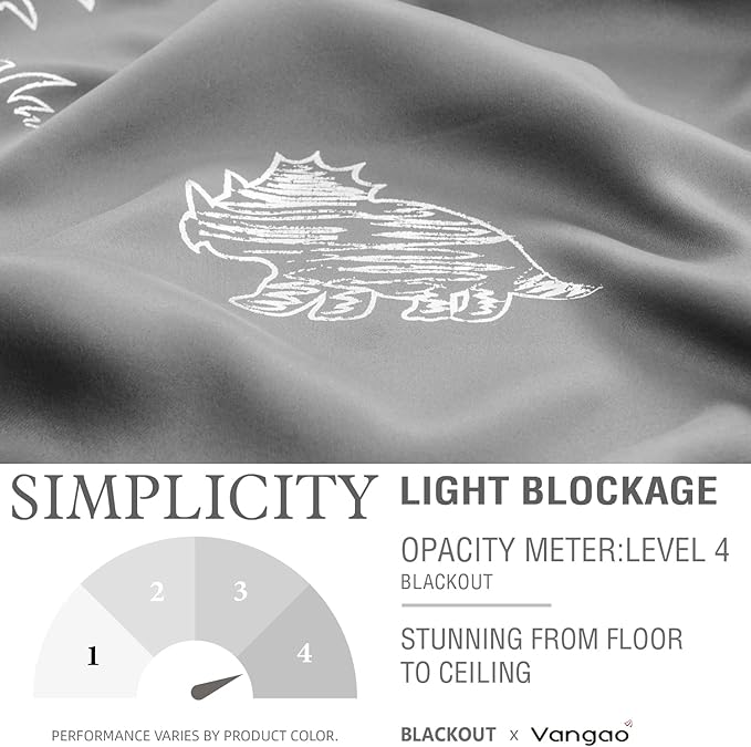 Vangao Grey Blackout Curtains Dinosaur Curtains for Boys Kids Nursery Girls Room Silver Dino Foil Print Thermal Insulated Grommet Top Window Drapes 63 Inches Length 2 Panels