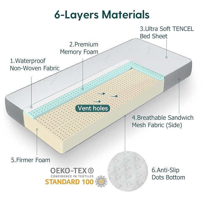 - 【DUAL-SIDED SLEEP MATTRESS】 Baby’s good sleep is closely related to a comfortable mattress. In order to better accompany baby’s growth, our toddler mattress adopts a double-sided sleep design. Age range: 0-8 years