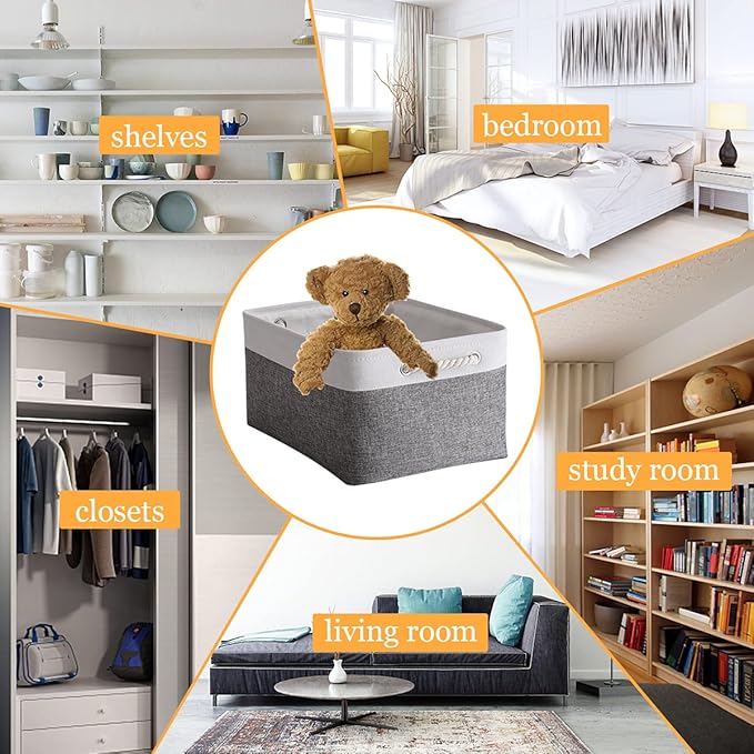 - LARGE STORAGE BIN & PROFESSIONALLY & PRACTICAL - 15.7LΓ11.8WΓ8.3H, can be used as storage baskets for shelves,closet storage bins, linen closet organizer,nursery basket storage,laundry baskets, bathroom towel storage,also can organizing baby Stuff,clothing, kidβs ,pet products, laundry, towel, bedsheet,sport gears,suitable use in bedroom, living room,study room,rest room,bathroom, kitchen,office,shelf,closet and cabinets. excellent choice for keeping your space nice,tidy and organized
