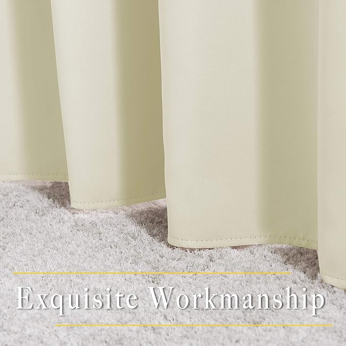- MULTI-FUNCTION: Super heavy and soft Blackout Curtain Panels are very upmarket. Besides, 85%-99% light blocking, thermal insulated, soundproof, and energy-efficient. Thread trimmed and wrinkle-free, both sides are the same color.
