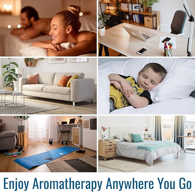 - AROMATHERAPY DIFFUSER compact design is sleek and modern. The beautiful and modern wood grain base or white base complements any room. It is the perfect apartment essential, dorm essential or new home essential to bring peace and tranquility anywhere.