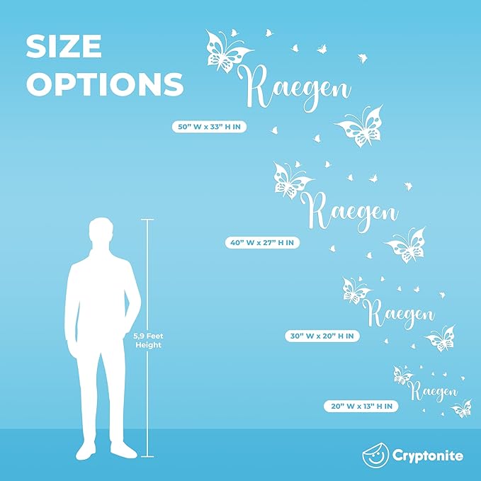 - 📏MULTIPLE SIZE CHOICES FOR GIRLS WALL DECOR: Tailor the name decal effortlessly to your space with a range of 3 size options. Our diverse size offerings a perfect fit for any wall in your girls room. If you desire a size not currently available, simply contact us for personalized pricing. You can choose from the following sizes: S (W20"x13"H), M (W30"x20"H), L (W40"x27"H) or XL (W50"x33"H).